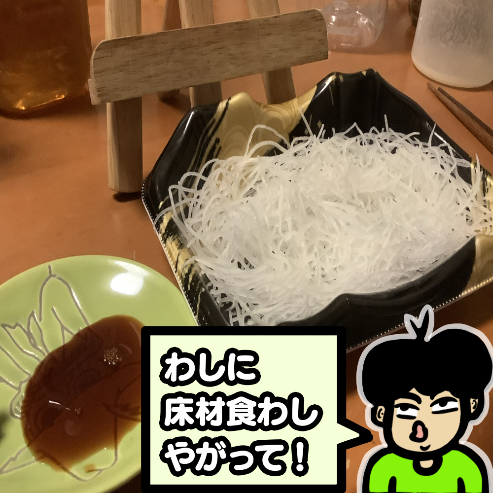 大好物だが、刺身の下に敷いてある大根、「刺身のつま」があまり好きじゃない。