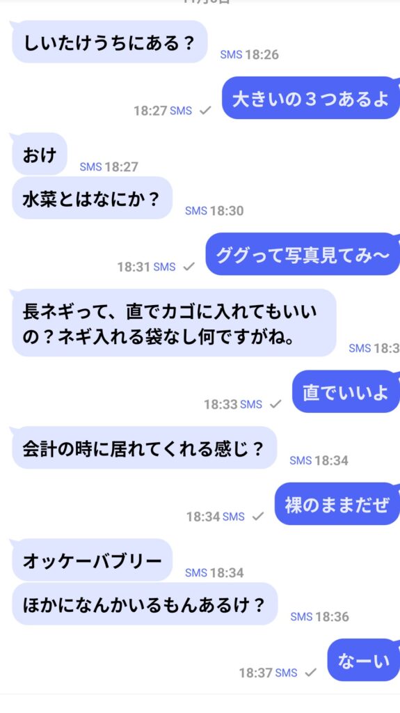 そして早速、スーパーで買い物中のたろからメールが来た。