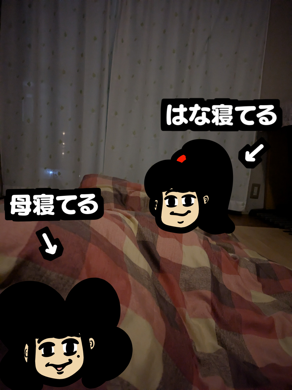 で、起きる寸前の母娘。