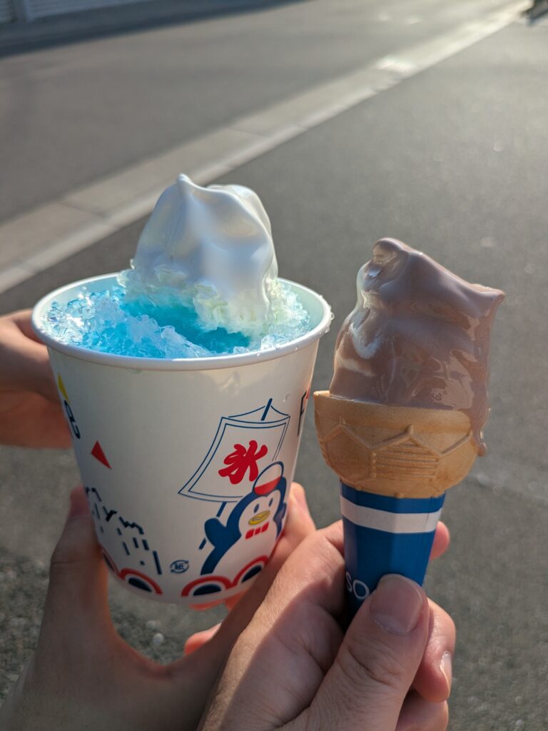 帰りにたろはかき氷(100円)と私はミックスソフト(100円)を食べながら、また1時間かけて帰る。