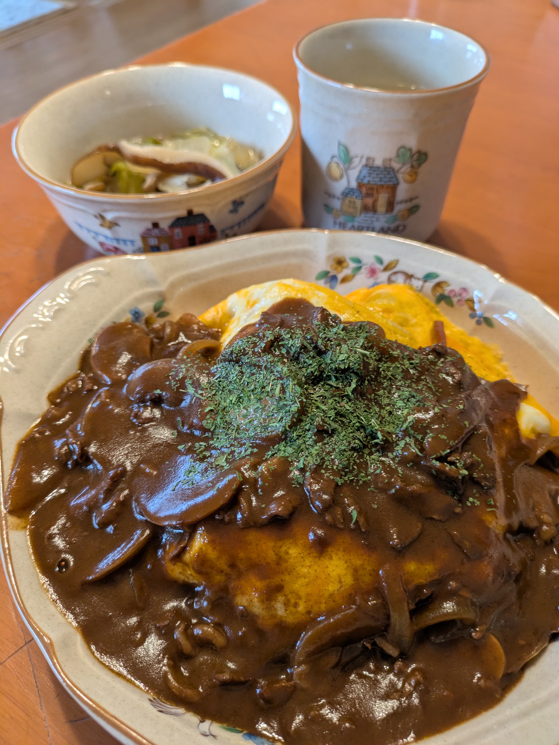 オムライスにハヤシソースたっぷりかけたら美味しいね💕