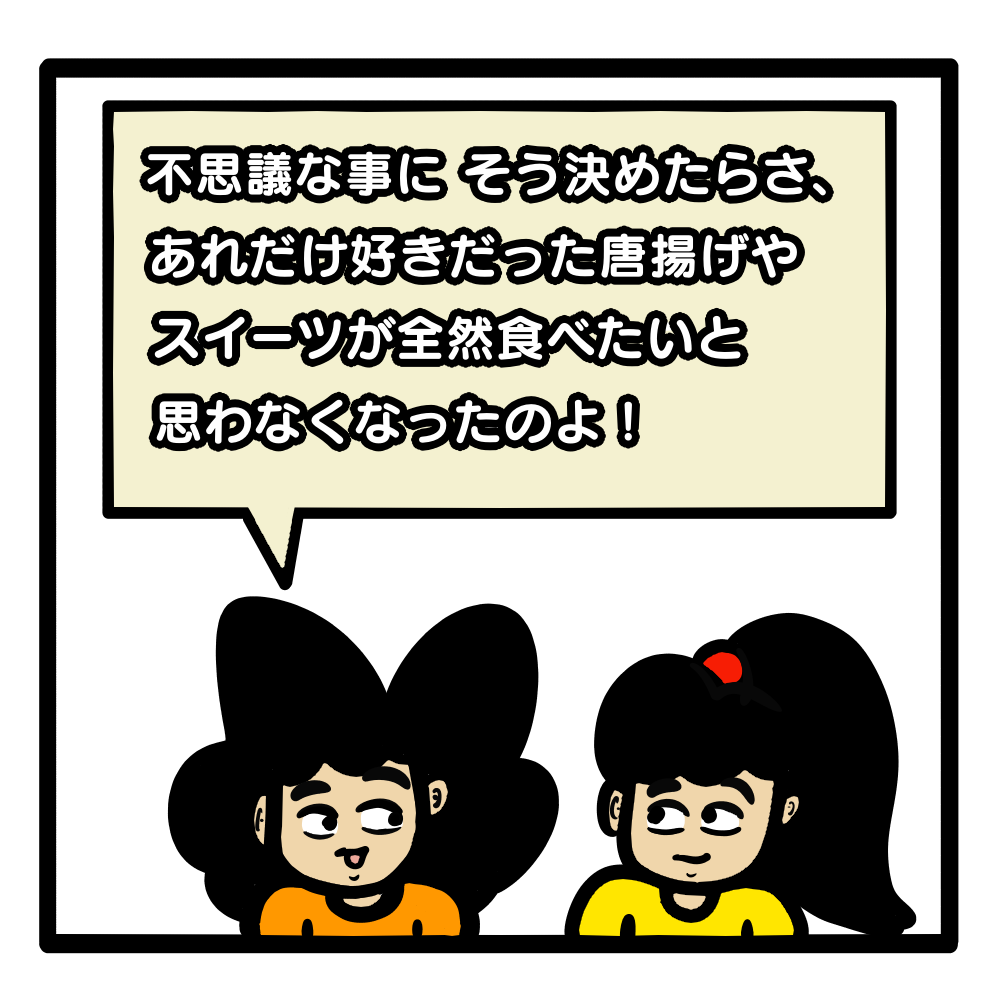 自分のコンプレックスな部分、問題としてきた部分を否定しない意識が持てた事で、何故かあれほど好きで食べてた唐揚げとスイーツが、食べなくても全然大丈夫になったという変化が起きました。
